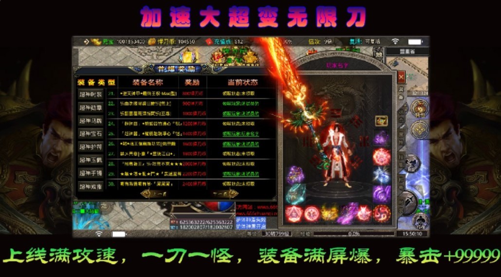 5.回收装备返利海量元宝经验。