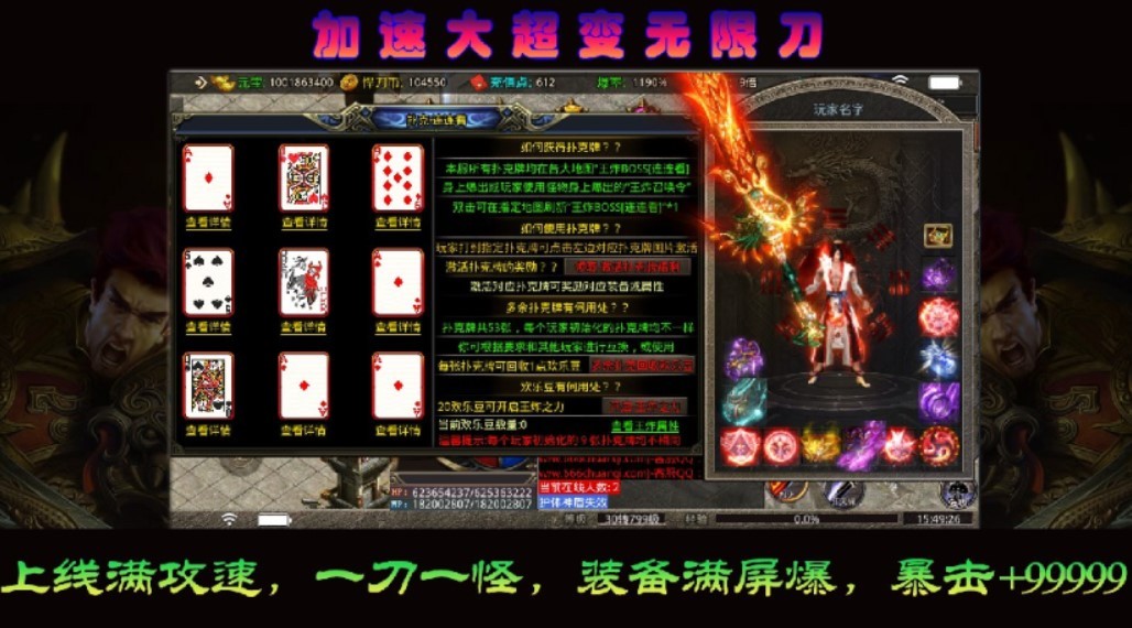 六六六加速大超变传奇来袭,无限刀传奇竞技游戏,传奇礼包:刀刀冰冻卷轴*1,双倍首爆卷*1,欢乐豆*200,快速绑定qq微信获取礼包,各色盛装轻松送,传奇转生,自由交易市场开放,所有传奇怪物都能轻松爆极品,更多的趣味传奇竞技玩法等待玩家来发掘,非常值得去尝试的传奇竞技冒险游戏。