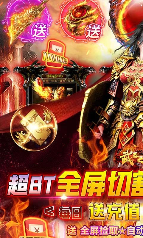 3、每日送充值:每日免费送??真实充值一切全部靠打,不用充值! 0充通关*0充终极x0充无敌!