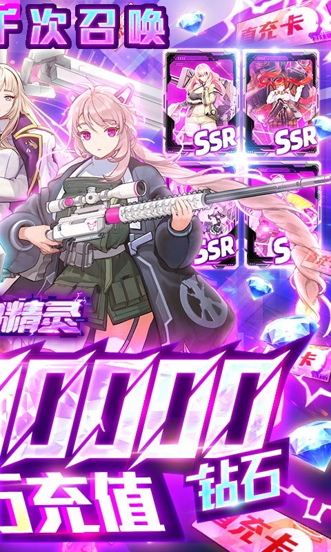 1.累登送10万充值卡(等于1亿钻石),游戏内置千次召唤券,10万充值卡全部免费送!