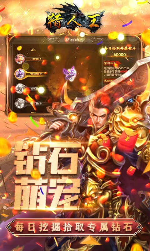 猎人王返利版游戏来袭,经典刺激的传奇竞技冒险游戏,激烈刺激的皇城竞技传奇游戏,热血刺激的沙城对决,多样核心玩法轻松尝试体验,大量元宝,打怪金币现金红包随机掉落,发表自己的看法,随时随地轻松尝试游戏,全新的独创竞技玩法,一键轻松释放技能,全屏轻松秒杀对手,非常值得去尝试的传奇竞技冒险游戏。