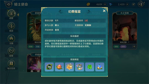 摇篮副本是游戏在玩家们完成相应主线剧情之后,开启的一种特殊的单人体验玩法。这个副本挑战当中,我们需要发挥出自己的强势守卫能力,利用自身的实力来守护好幻兽蛋的相应安全。挑战完成之后可以获得大量丰富的幻兽培养材料和道具。