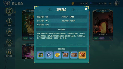 游戏里面的商会是需要玩家们的等级达到21级之后才允许解锁的,玩法能够有效的提升玩家们的体验感和社交。可以通过挑选的方式来完成相应丰富的奖励的任务,此外还有难度较大的多人挑战副本玩法,通关之后都可以获得丰富的培养道具哦。