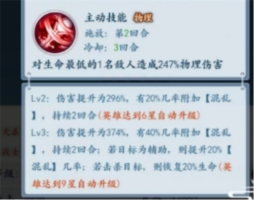 能够对敌方血量最低的所有单位造成高额的物理输出。这个技能取决于敌方当前血位的血线,若在自由释放这个技能时,敌方已经阵亡,那么将会完成击杀效果,从而为蚩尤进行恢复相应血量值。凭借这个技能,他能够获得高额的恢复效果,因此在战斗过程中也有不错的持续续航能力。