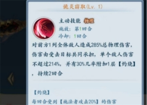 会对敌方前方的所有敌人造成高强的物理输出伤害,但是这个输出效果是按照敌方所波及的人数来定的,如果敌方前排人数越多的话,那么这个伤害也会遭到相应的削减。而且基于蚩尤的火属性伤害,这个技能还会附加敌方一定的灼烧效果,所以也能够对敌方能够无限的施加额外的附加伤害。