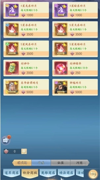 如果渴望获得这种宝贵的属性碎片,可以光顾当地商场以寻觅。值得注意的是,并不是每个商场都提供此类商品的。特别是功法商店和英雄商店通常不会有这类碎片。相反,可以考虑前往积分商店进行选择。这个商店的特殊之处在于,需要使用积分进行选择。在你探索旅程的初期阶段,恐怕需要更加积极地积累积分,以确保能够购得足够数量的属性碎片。