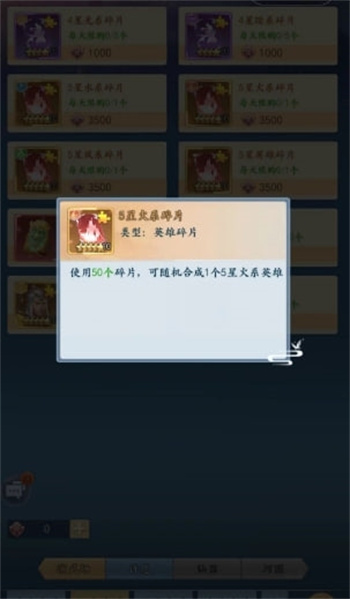 在现在的游戏中,火系的属性碎片都是用来进行融合的,融合一次需要50张相同的属性碎片,由于它并不是属于某个特定的角色碎片,玩家们可以在融合之后,从火属性中选择一个英雄。从功能上来说,这东西比起角色碎片还是要好一些的,最起码火属性的角色,玩家是可以自由选择的。