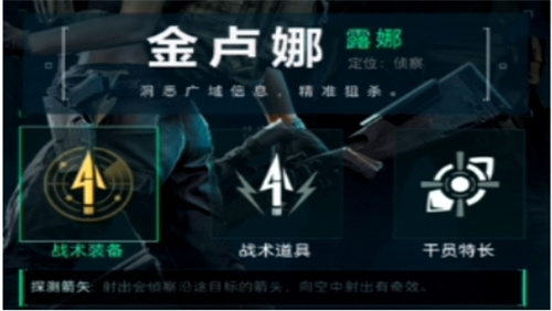 《三角洲行动》金卢娜是一名侦察兵,可以为团队获得情报和战术选择,拥有特殊道具“电击箭矢”,可以帮助队伍削弱敌方的能力。深入了解《三角洲行动》的策略性小队作战,玩家会发现游戏提供了多种充满战术挑战的兵种选择。