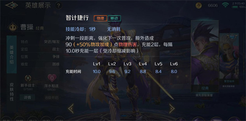 曹操的二技能“智计捷行”是一款位移技能,无需损耗能量就能无限使用,进行一段位移。此技能可充能两次,伤害较低,通常需要借助一技能“权谋之刃”来造成伤害。因此,在战斗中,玩家们可以先用二技能起手,然后接两次平A后,再选择使用“权谋之刃”对敌人造成减速,再接着两次平A即可打出大招。