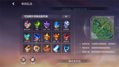 首先,值得注意,奇技乱流这个玩法对于初次踏入游戏的玩家来说是锁定状态,只有当玩家的账户等级达到7级后,才能够踏入这个玩法的殿堂。不必担心,升到7级并不是一项遥不可及的任务,玩家只需进行几局游戏,就能轻松达到这个等级。然而,需要注意,奇技乱流是一个限时开放的模式,只在规定的时间段内对玩家开放。具体的开放时间为中午12点至第二天凌晨一点,其他时间则为关闭状态。因此,请务必在规定时间内充分享受这个玩法带来的乐趣。