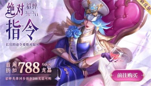绝对指令皮肤目前的售价是988龙晶,这个皮肤虽然定位为史诗级皮肤,但其拥有的特效和音效都是非常华丽,有特色的。貂蝉在这款皮肤当中也一改往前的风格,反而转身成为励志的霸气女郎,拥有着非常帅气华丽的外观,在打斗特效时还有粉嫩的技能也是特效。