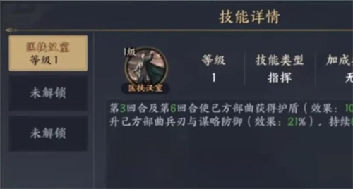3.技能主要是指挥技能仁德和主动技能匡扶汉室