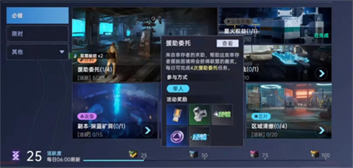 在星球重启的广袤世界中,观察者协会分布了多种限时训练设施,蓝色虚影所示即为限时训练的入口。幸存者可前往这些设施附近,启动各式各样的限时训练,成功应战将赢得物品奖励以及20点探索值的丰盛奖励。