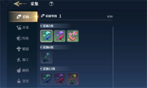 采集是一项容易获取的技能。玩家可以在野外收集各种植物、矿石和虫子等资源。这些资源可以用于制作装备、炼药和做料理等。采集不需要太多的技巧,只要有耐心和一双灵巧的手就可以了。开采是针对野外资源的技能。开采需要玩家具备一定的力量和勇气,同时还需要一些开采工具的支持。
