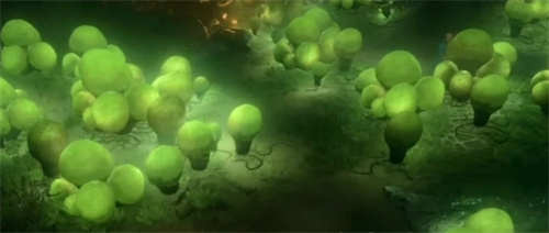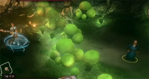 玩家首先要到达幽暗地域,在这篇区域的左上角中有很多绿色的蘑菇,玩家如果碰到这些蘑菇会损失生命值,因此玩家要通过跳跃到达蘑菇的中心,并与巴伦回合。玩家可以使用跳跃术一次性跳跃到蘑菇的中间黑色区域。
