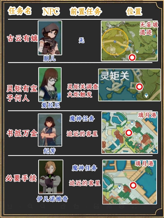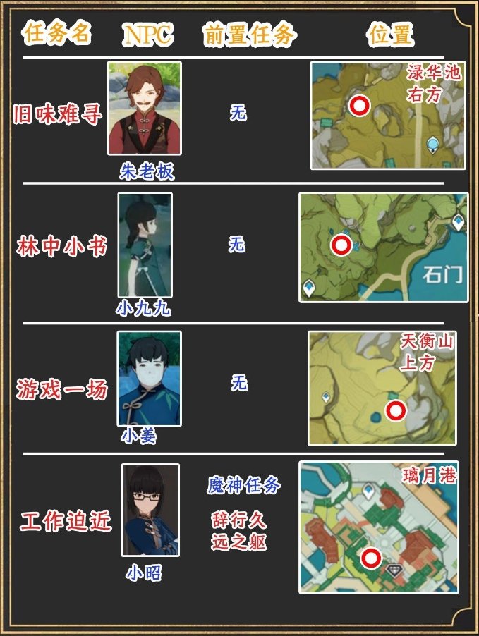 触发人物:索拉雅(二测人在望舒客栈,三测改动在下图黄圈处)