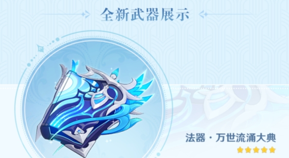那维莱特专武【万世流涌大典】90级属性为542基础攻击,88.2暴击伤害。该武器还能帮助那维莱特恢复能量,这无疑是为那维莱特量身定做的武器。