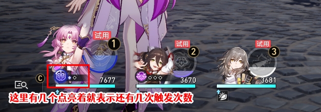 这个「触发次数」就是战斗界面,符玄头像下面的标志,有几个点亮着就表示还剩几次触发次数: