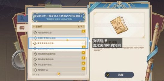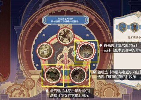 首先选『海尔希溶解』(两点钟位置),选择『魔术表演中的异响』驳斥