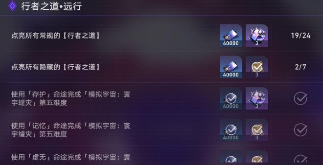 行者之道其实没点亮多少,就正常全命途通关难度五了。比起行者之道的加成,我觉得运气才是决定能否顺利通关的主要因素,当然也要有合适的思路。这些就是我后面会讲的,而且由于很细致全面我分了好几个部分。你觉得自己是奇物不知道该怎么选那就看奇物,不知道宇宙碎片怎么花那就看宇宙碎片部分。自己查漏补缺一下,当然全看完是最好的。