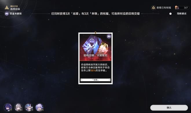 那么再配合回响交错,我们就可以很快的拿到较好的命途回响的增益和其命途祝福。拿巡猎举例,我们就可以很快的凑出巡猎的命途回响,然后帮我们更好的打怪,后面再收集一些丰饶祝福,就可以激活命途回响交错,提高自己队伍的生存能力。