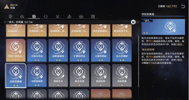 虚无至少需要五个,如果在位面二刷到使虫皇多一个雷弱点的话,优先需要回能的回响(局外人),并留住等场上至少有三到四个虫子的时候再放,尤其二三阶段的时候,留意虫皇终结技,配合大招清理小虫子;能开出第二个就选延长时间(怀疑的四重根))