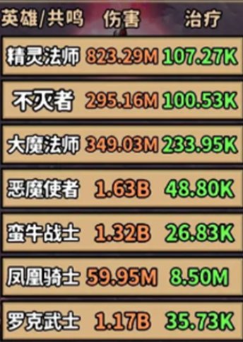 这是一套三核五反阵容,也是当前版本最好用的一套阵容,核心输出就是恶魔使者、蛮牛战士以及罗克武士,这三个角色的输出伤害占比是非常高的,加起来就差不多占了全队输出伤害的90%以上,这套阵容当中回血主要是依赖水宝宝和凤凰骑士,持续回复队伍的状态,保证队伍的存货环境,用这套阵容是完全可以通关暗影深渊600层的。
