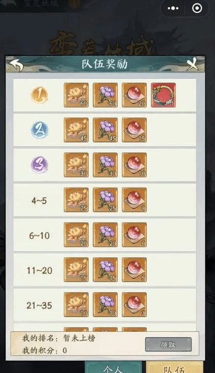 组队:蛮荒妖域凶险万分,需要组队参与冒险,每个队伍的上限为4个人,活动开始之后是不允许解散、退出和踢出。