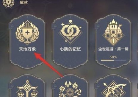 2、在弹出的选项中点击成就选项,选择天地万象选项。