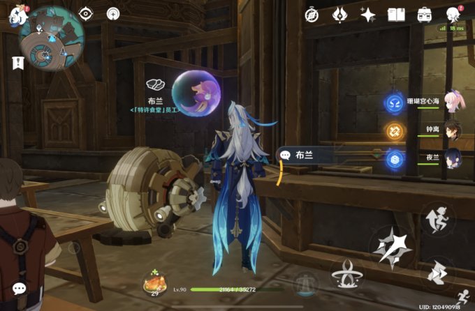 先来到新枫丹科学院下方的传送点,然后跑到我所在的位置会看到一台枫达贩卖机。