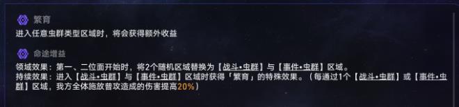 根据命途效果,我们需要尽量通过带有【虫群】后缀的区域提高我们的普攻伤害。并多拿繁育祝福。