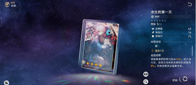 (3)光锥四星首选「余生的第一天」该光锥的白值数值非常不错,且特效能进一步提升全队生存能力