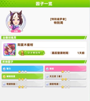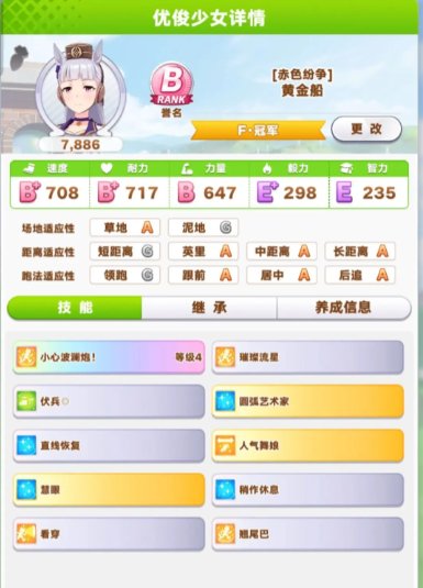 阿船在前面的赛事还是中距离,所以点速力就行。进入长距离赛事后,抓紧进入耐力训练。