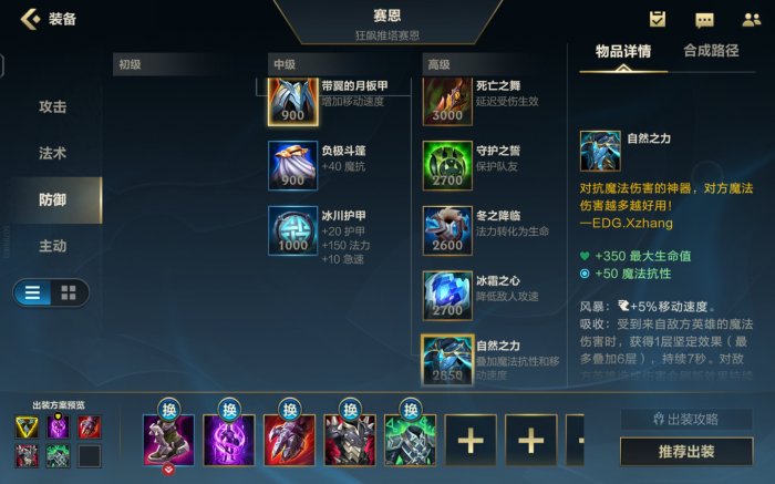 自然之力:自版本加强后,被动更好触发,是对抗法师多的阵容的不二之选