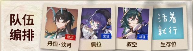这个队伍饮月可以放心使用虚数4件套来获得最高增益,佩拉需要新手任务开始前来保证循环。