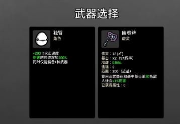 2、想要玩这个角色并且顺利过关的话,那么就需要使用带有成长性的武器,而且也有一定的翻车几率咋。开局可以先拿上幽灵斧,因为本身是有很高的攻速加成的,因此即使使用幽灵斧的他的攻速也是完全不需要担心的。再有就是刚才提到的缺点了,虽然是成长性武器但是攻击范围太小了,因此是很容易暴毙的。