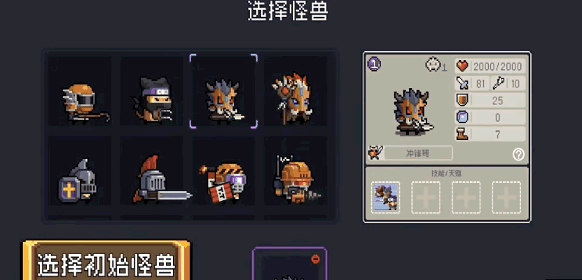 在旅途的开始,从众多怪兽中选择一个加入你的队伍。按住怪兽信息面板的技能图标,你就能看到这个怪兽的技能描述;点击基本面板,你就能查看到这个怪兽的详细属性。 战斗 作为怪兽指挥官,你有两个敌方队伍可以选择进行战斗。同样地,点击怪兽图标就能弹出怪兽信息面板,查看敌方的详细属性、技能介绍。选择你要对战的敌方队伍,点击确认就进入了格斗场。