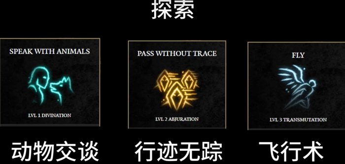4、探索类优先选择:动物交谈、形影无踪、飞行术。