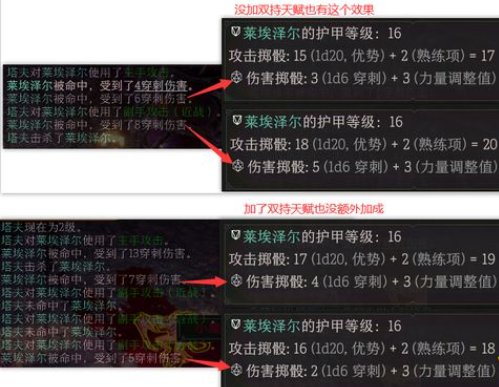 使用两把武器战斗时,你可以将相应属性调整值加到第二次攻击的伤害上。