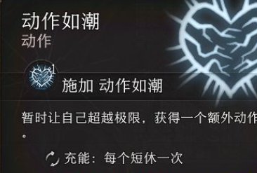 获得一个额外动作让战士有很强的爆发,每个短休充能一次也还算廉价。战士5级一个动作就能攻击2次,配合动作如潮就是4次!