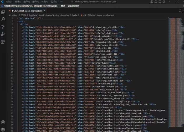 xxx_steam_manifest.xml文件中游戏完整性校验信息