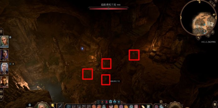 前方洞穴中有四名地精,位置如下图标记。先把面前的消灭后,高打低可以很轻松的再击败下方的三名敌人。