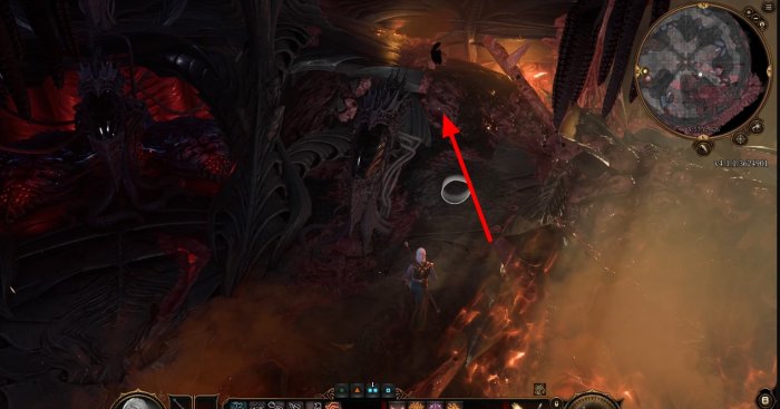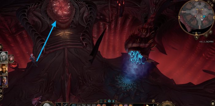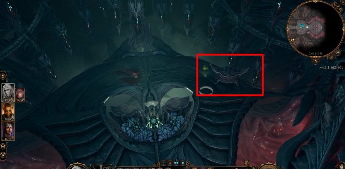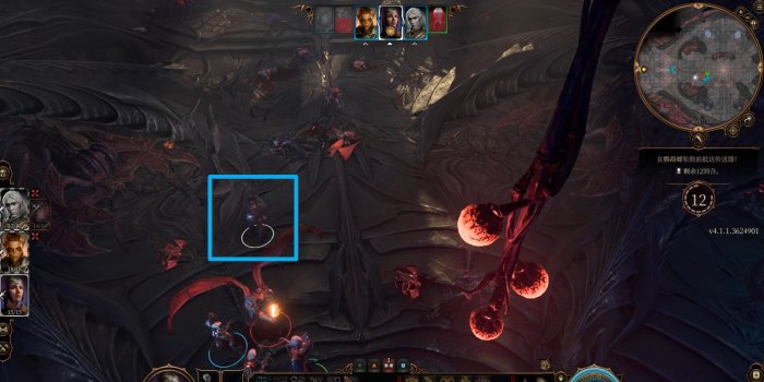 在围攻扎尔克的同时我们还需要让一名队友走到扎尔克背后稍微远一点的位置,具体位置参考下图中的影心。噬脑怪随从无法触发动画,老老实实打扎尔克就行了。