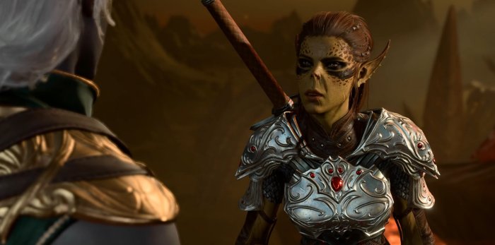 途中会遭遇同样被蝌蚪寄生的吉斯洋基人【莱埃泽尔】,一番交谈后她会加入我们的队伍。