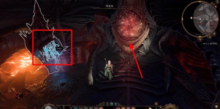 回到刚刚的房间通过南侧的恢复站旁边的门前往大厅。