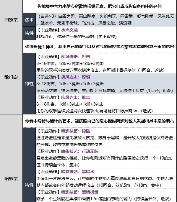 【职业特性】额外攻击:发动徒手或武器攻击后可以进行一次额外的免费攻击。来自多个职业的多重攻击不叠加