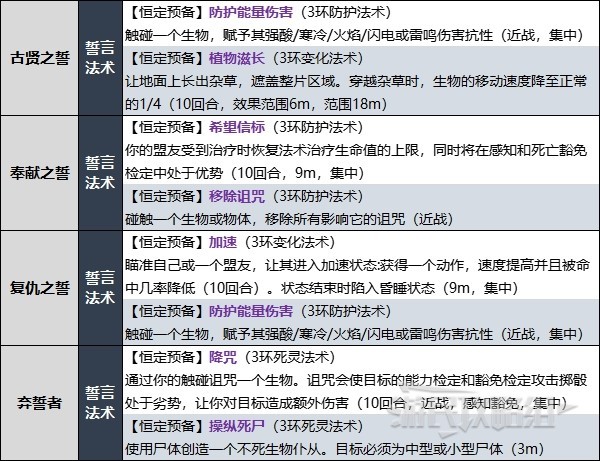 【副职特性】古贤之誓、奉献之誓、复仇之誓、弃誓者