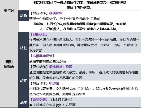 【被动特性-自然探索者】驯兽师:你与动物们有着强大的羁绊。可以在不消耗法术位的情况下施展获得魔宠