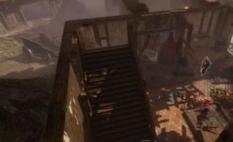 1、先去到染疫村落的西北部,会有个燃烧的旅馆,上楼后会看见两个门,打开蓝色的门。