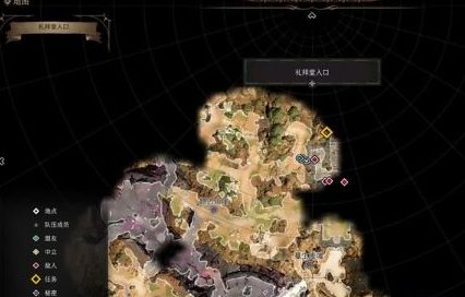 找到莱埃泽尔后往东走就可以看到废墟礼拜堂入口,这里有强盗小队守卫,最好潜行进去,能绕到对面楼梯上先伏击法师最好,中庭那个落石可以砍断绳索砸一个洞,进入礼拜堂内部,清理完守卫后,可以通过欺瞒、表演和开锁进入废墟,注意进去就有陷阱,废墟里尸体上可以搜到钥匙,附近还有不少箱子,侧室里的书本可以通过奥秘、力量、游荡者、敏捷检定打开。